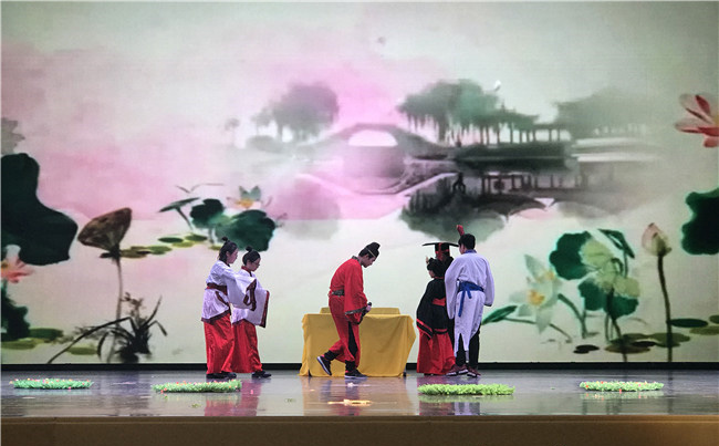 【香港商報網訊】記者 寇剛 報導:27日,一場別開生面的“戰國商紀之屈原新編”英文話劇在甘肅中醫藥大學首演。該話劇由中醫藥大學經貿與管理學院的師生共同演出,在給觀眾帶來一場視聽覺盛宴的同時,也鍛煉了學生的涉外能力。