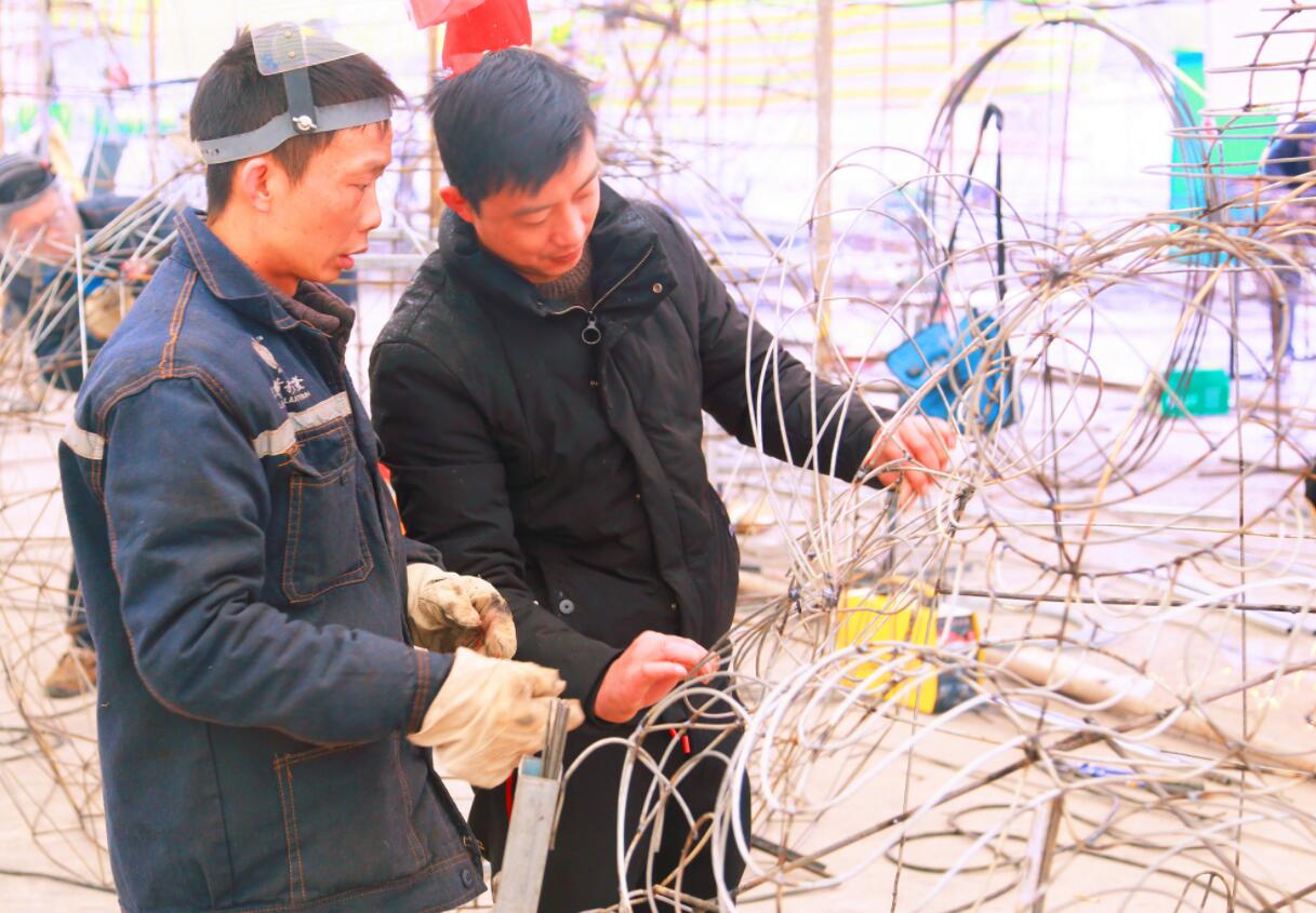 施工人員正在有條不紊的創作燈組藝術品