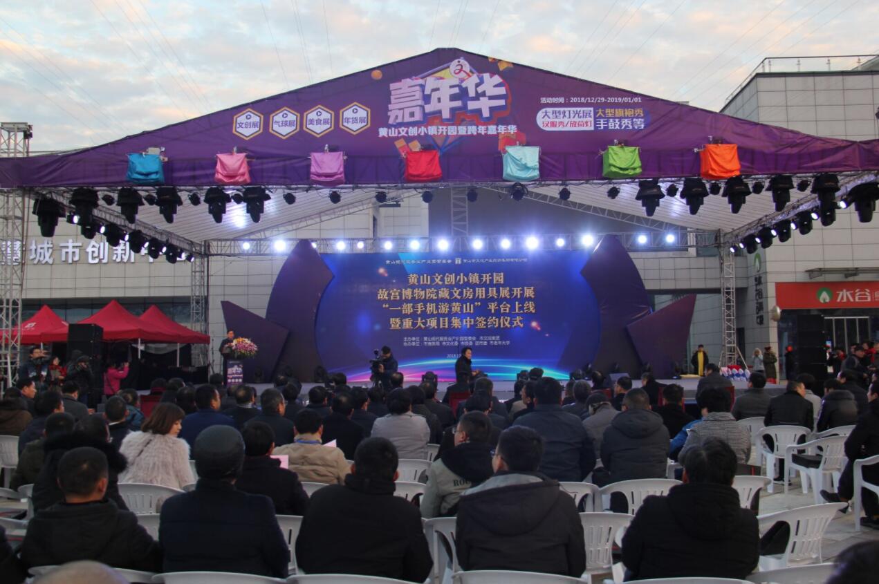 黃山文創小鎮開園儀式上,舉行了故宮博物院藏文房四寶用具展開展、“一部手機游黃山”平臺上線暨重大項目集中簽約活動。黃山市市長孔曉宏、市人大常委會主任程迎峰、市政協主席路海燕、市委副書記黃林沐、副市長李高峰、市政府秘書長洪建春等主禮。