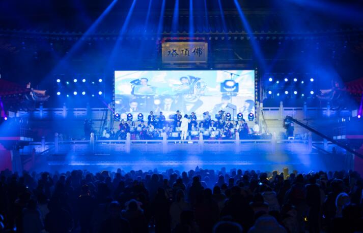 在佛頂廣場舉行的跨年晚會由牛首山禪韻藝術團主辦,包括交響管樂、京劇、崑曲、流行演唱、武術雜技等精彩演出,融傳統與現代、東方與西方、古典與時尚於一體,展現牛首山的“文藝范”。