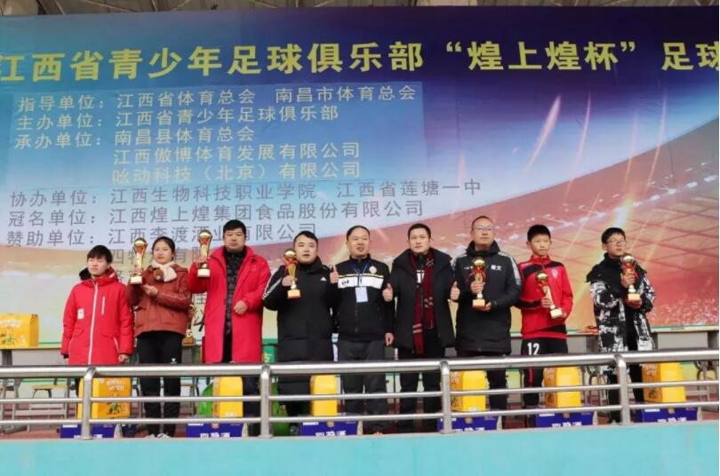 江西省體育總會秘書長陳躍平、江西省體育總會辦公室主任高道強、江西省青少年足球俱樂部理事長雷華壽、江西煌上煌營銷中心總監助理陳新智、江西省青少年足球俱樂部秘書長胡向雲,副理事長喻俊華、雷希隆,為比賽錄取各組別的一二三等獎,頒發獎盃和獎品,並評選出“童星獎”和“金靴獎”。(操端晶)