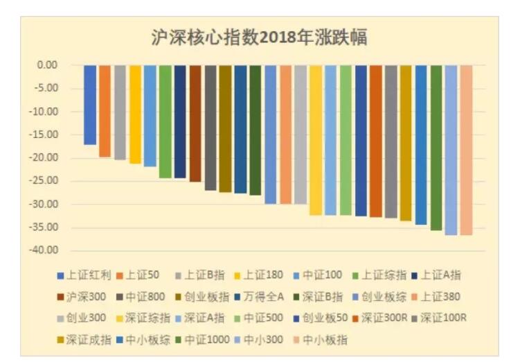 2018年A股核心指数跌幅均超过15%,剔除今年上市的新股后,A股年内收益为正的仅有228只个股,占比为6.4%。也就是说,赚钱的股票不到一成,超过九成的股票是亏损的,A股中一半股票跌幅超过了30%,人均亏损高达9.9万元。