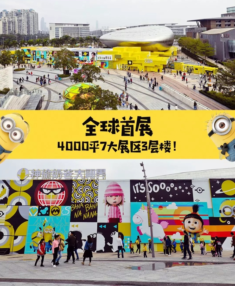《神偷奶爸》系列動畫的經典片段與回憶,全都在深圳落地還原了。展覽總計占地4,000平,利用3個樓層打造出7大互動體驗展區,包含環壯劇院(Theater)、實驗室通道(Hallway)、格魯實驗室(Gru's Lab)、壞蛋區(Villains)、女孩們的房間(Girls' Room)、小黃人特區(Minios Zone)與商售區(Retail)。透過經典珍貴手稿圖素、格魯實驗室、還有史嘉雷殺很大(Scarlet Overkill)、維克特柏金斯(Vector Perkins)、人稱猛老大的愛德華多(Eduardo Perez A.k.a EL Macho)、巴薩澤布拉特(Balthazar Brett)等4位歷任反派,讓人除了可以藉由展覽進入電影經典場景與角色重逢外,還可以貼身了解小黃人的演化史。