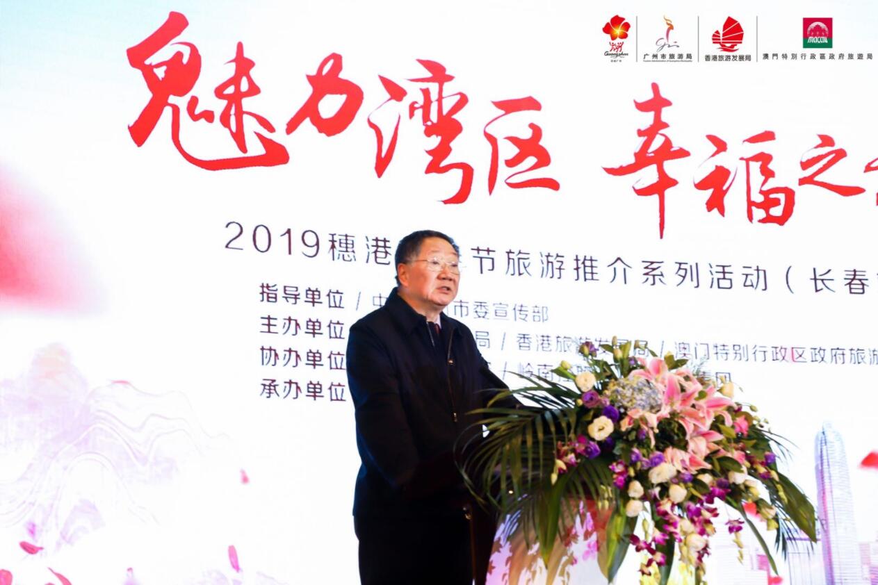 【香港商報網訊】遇見美好大灣區,相聚新春穗港澳。1月10日上午,由廣州市委宣傳部指導,廣州市旅遊局、香港旅遊發展局、澳門特別行政區政府旅遊局主辦,中國南方航空公司、嶺南控股、廣東長隆集團協辦,廣州廣播電視臺承辦的“魅力灣區 幸福之旅”2019穗港澳春節旅遊推介系列活動在長春舉行。廣州市人民政府副秘書長張建華、長春市旅遊局副局長袁繼業出席會議並分別致辭。