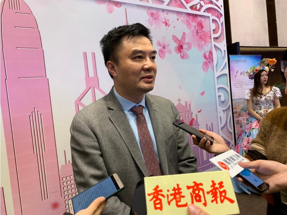 廣州市旅遊局市場推廣處處長梁迅接受記者採訪
