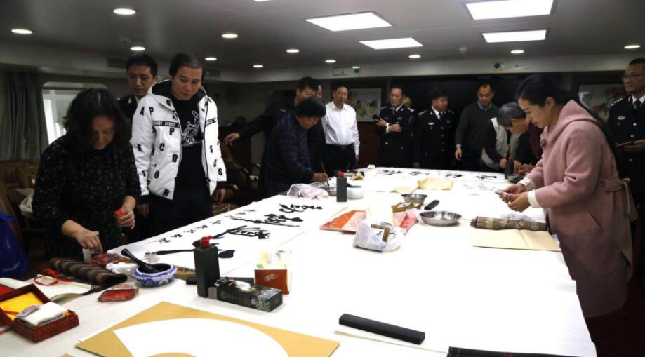 【香港商報網訊】福建海岸線長度全國第二位,曲折度全國第一,海洋與漁業管控任務十分繁重。日前,中國扇子藝術學會書畫藝術家一行8人來到福建省海洋與漁業執法總隊中國海監8001船,透過“潤物無聲”的藝術手法,使黨風廉政建設更好地深入人心。
