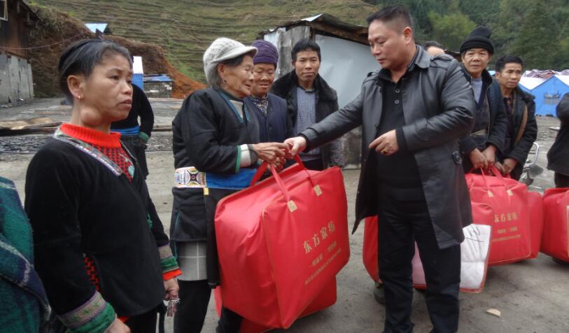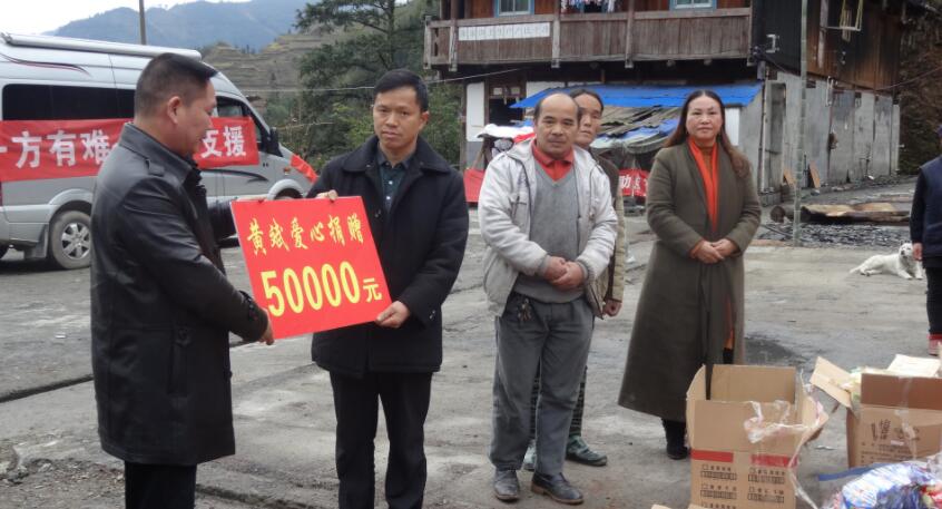 得知污頁村受災的情況後,黃斌動員家人和朋友為受災的村民獻愛心,自己拿出積蓄為村民們買來30床棉被、300斤豬肉以及糖果餅乾等物資外,還捐助了3萬元現金。同時他還動員自己的子女將課外書籍、學習用品、兒童玩具等一併捐獻給受災的小朋友,動員一些愛心朋友一起集資贊助村民們度過難關。
