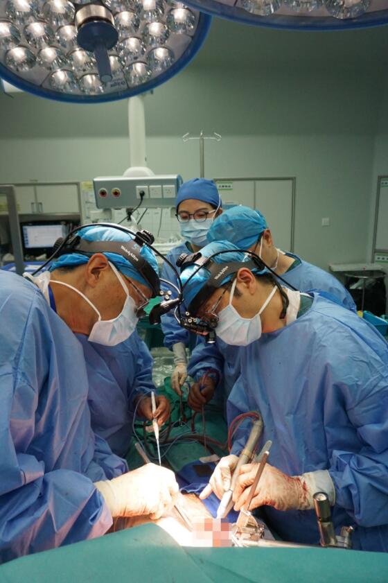 2018年10月初,香港大学深圳医院卢宠茂教授(左一)带领港大深圳医院肝胆胰外科团队,完成了王先生的“全肝血流阻断、门静脉低温灌注下左三肝切除,右肝静脉重建,胆肠吻合术”