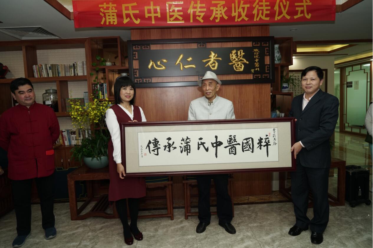 近年来师承这种中医自古以来的传承形式得到国家的重视和大力推动。蒲志孝多年来一直在物色合适学生、希望藉由师承这种模式,亲自执导学生的学习和临诊,培养更多出色的中医临床医生。本次申平堂堂主于洋、乔莉伉俪有幸双双通过老先生的考察,加入蒲氏中医在深圳的首批学生行列。研讨会后,“蒲氏中医传承收徒仪式”在申平堂中医馆大厅举行。两位学生遵循古礼向蒲志孝先生行拜师礼,蒲老先生对他们寄予厚望,希望他们谨遵师训、刻苦学习,为中医传承尽心尽力。