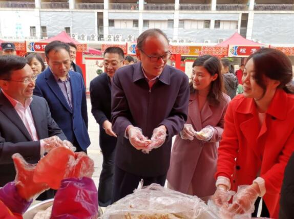 活动现场,最吸引眼球的要数客家美食区了。大浪街道充分挖掘客家美食文化,特别创作了客家文化动漫代言人——麒麒和麟麟,并布置了“麒麒麟麟,带你看大浪客家味道”客家小吃展,向在场人员展示煎堆、炒米饼、艾粄、圆笼粄等数十种大浪本地居民过年必做必吃的客家小吃,让更多来大浪的建设者了解大浪本土客家饮食文化内涵,促进本地居民与建设者的融合。活动当天,龙华区和大浪街道的领导还和建设者们一起,包饺子、制作客家小吃,现场其乐融融。