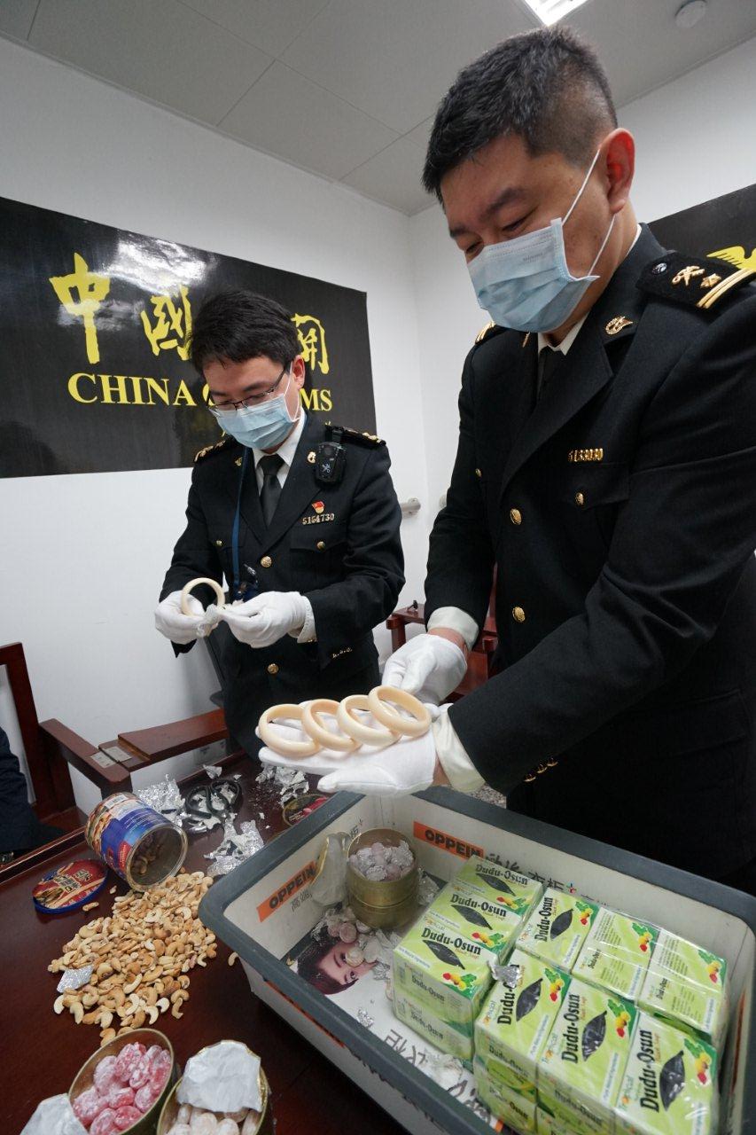 白雲機場海關旅檢處副處長李建軍介紹,9天查獲的5宗違規攜帶象牙製品進境情事,全部集中在亞的斯亞貝巴進境航班;而且都有明顯的主觀藏匿行為,具有較強的迷惑性,現場查緝難度較大。