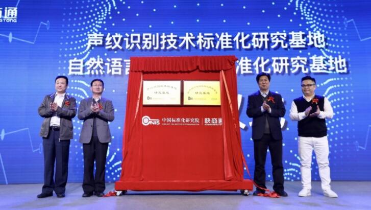 會上,廈門市政府、中國標準化研究院、快商通科技股份有限公司的代表共同為「聲紋識別技術標準化基地」、「自然語言處理技術應用標準化研究基地」揭牌。