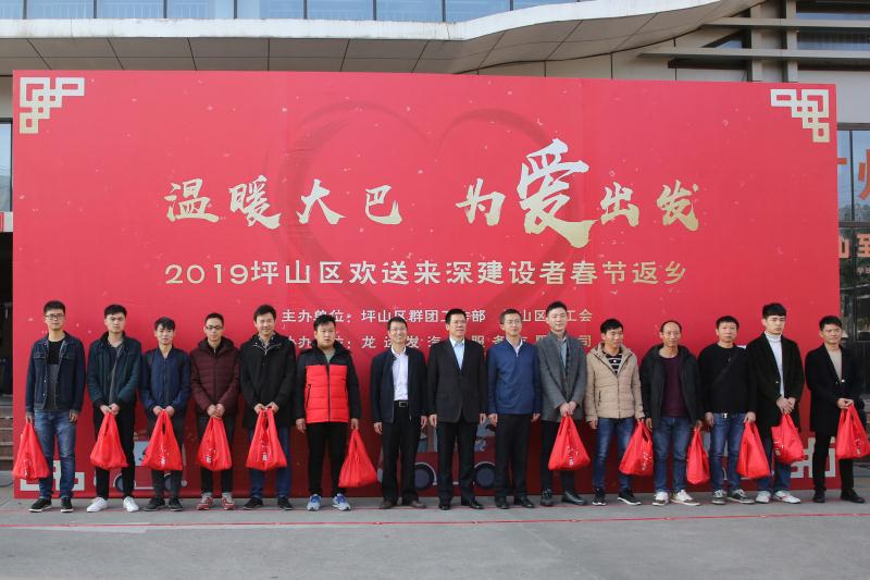 【香港商報網訊】記者 焦家志 報導: 1月25日,坪山區第二屆「溫暖坪山 與你同行」關愛職工系列活動之「溫暖大巴,為愛出發」歡送來深建設者春節返鄉活動在坪山汽車客運總站如期舉行,4輛愛心大巴開往全國3個省份5個城市,免費送180餘名來深建設者春節返鄉。區人大常委會副主任、區總工會主席楊勇出席了此次活動。
