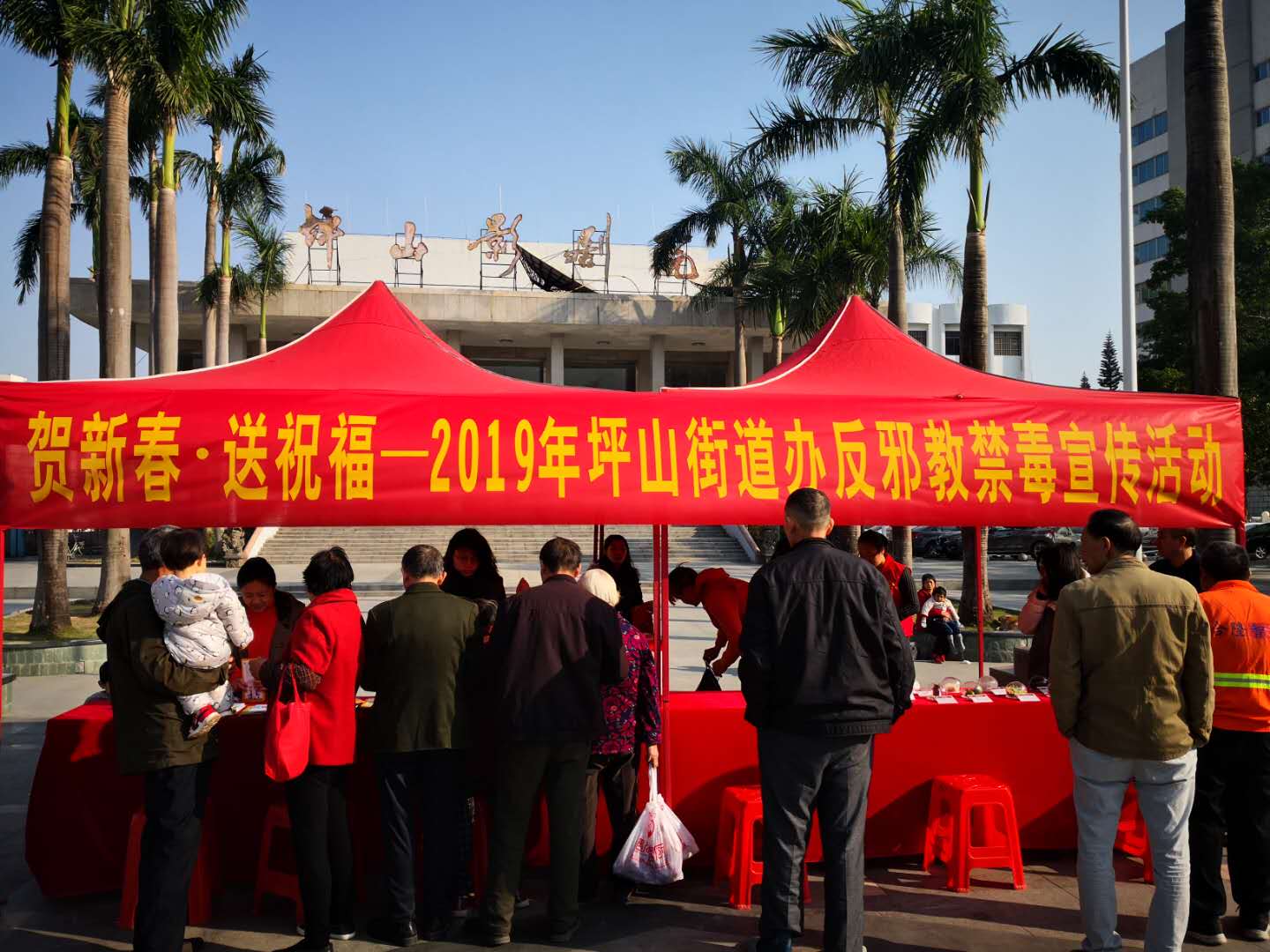 【香港商報網訊】記者 焦家志 通訊員 王啟華 報導: 1月23日上午,為繼續鞏固禁毒反邪教宣傳效果,深圳市坪山區坪山街道綜治維穩辦以「福」為主題,為轄區群眾帶來新春首場別開生面的禁毒防邪教宣傳教育活動。