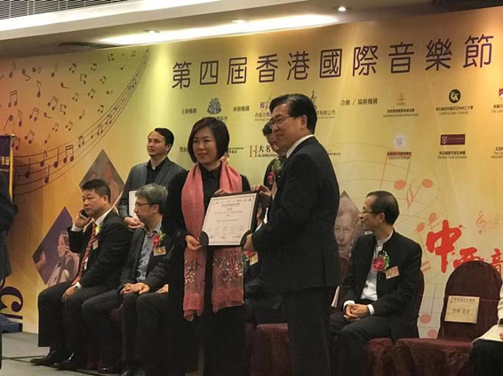 王秀華在香港接受頒獎