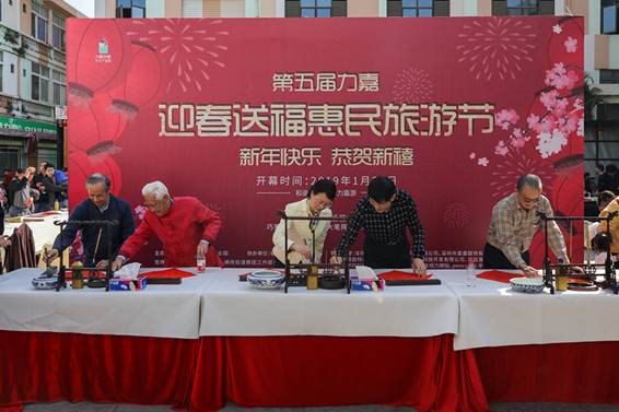 据悉,每年春节前夕期间,力嘉创意文化产业园都安排相关迎春活动,让艺术家与现场观众同乐。一直以来,园区的迎春送福活动得到政府的大力支持和市民的热情参与,至今已成功举办了五届,成为龙岗区旅游贺岁活动的一个标志性品牌,更是龙岗市民新年不可或缺的旅游活动。
