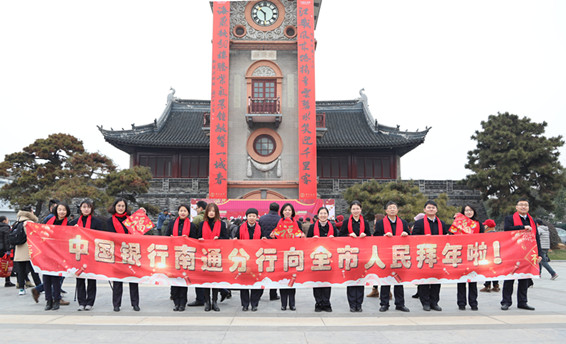 「在南通地標鐘樓掛春聯,既是一種文化自信的體現,也為春節期間的通城增加了一抹亮色。」中國銀行南通分行行長陸鴻說,南通中行作為全國文明單位,南通中行30多年來始終堅持服務立行,以專業的金融服務、溫情的文優服務,用心服務地方經濟發展,同時,還積極參與到南通的文明城市創建和精神文明建設。