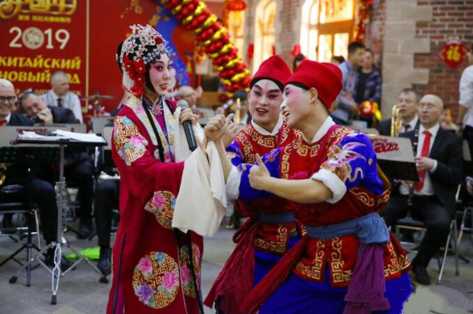 1月27日至28日,俄羅斯阿穆爾州布拉戈維申斯克市城市文化中心、群島商場、孔子學院、東方語言學院等地到處張燈結綵、舞龍舞獅,洋溢著濃郁的中國年味兒。原汁原味的山西晉城上黨梆子,美輪美奐的青花瓷旗袍表演,金髮碧眼的舞龍少年,中俄藝術家連袂演出的精彩節目引發現場陣陣歡呼。
