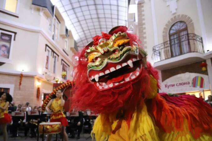 中國獅子亮相俄布市“絲路歡聚 中國年”