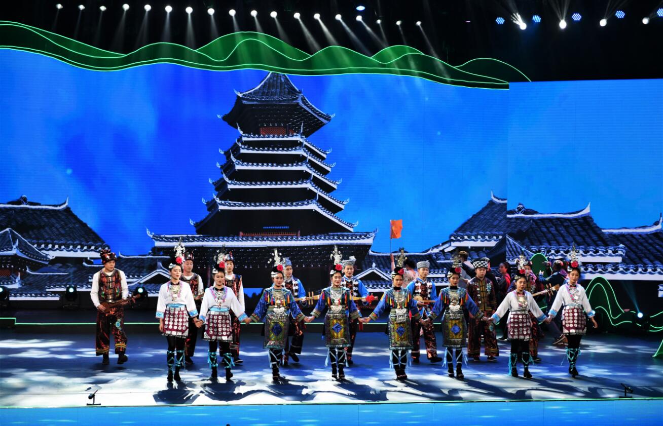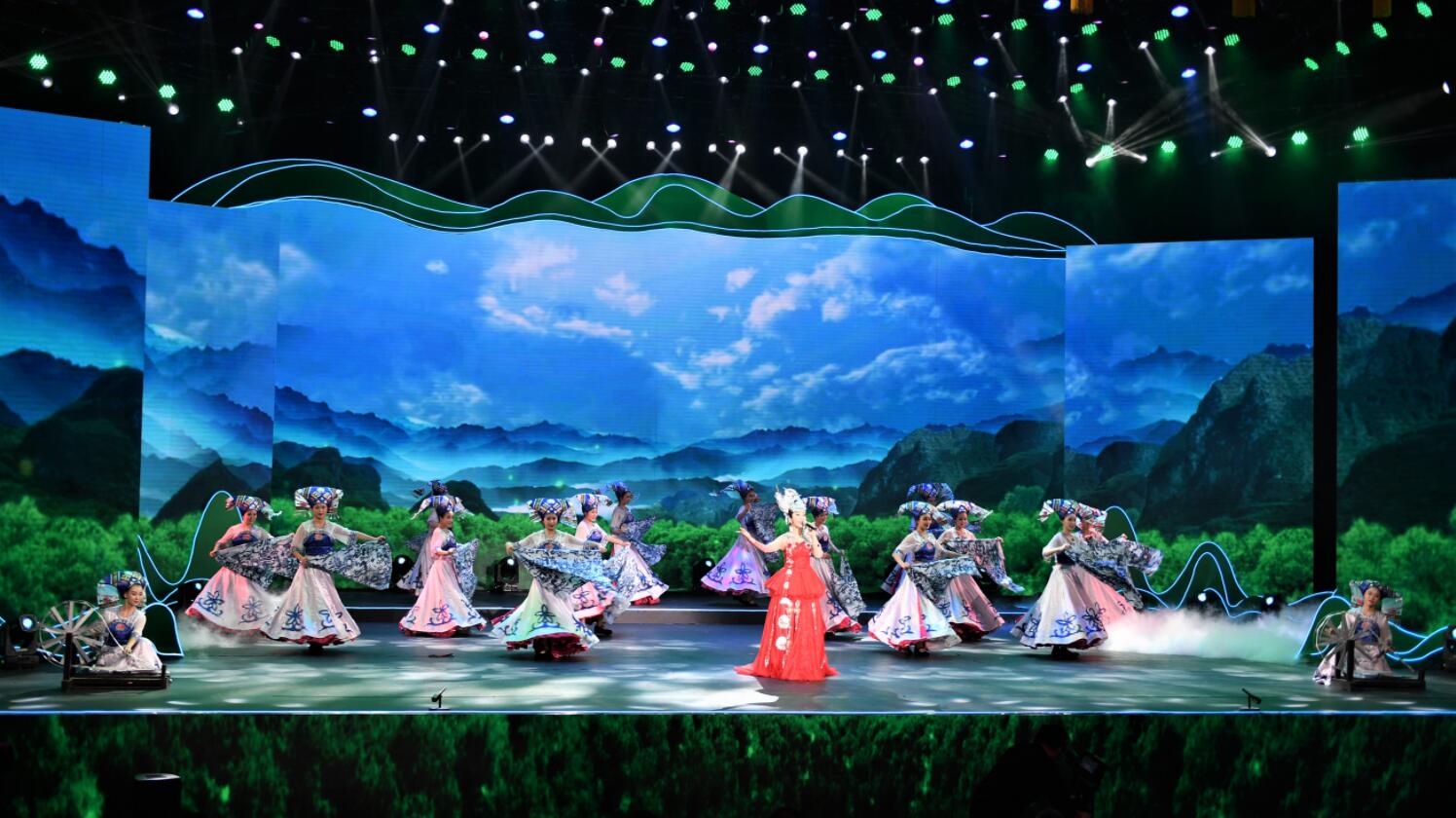 隨後,16個精彩節目輪番上演,歌曲《美麗中國》《雲上山水》《貴州我深愛的家鄉》《戀戀布依》《醉美我家鄉》等;舞蹈《匯安中心 盛世時代》《多彩水鄉》等;非遺《反排木鼓舞》《獅溪高腔大山歌》等;小品《如此旅途》等節目展示了貴州的原生態、多民族、奇異景,讓現場的熱情一浪高過一浪,掌聲歡呼聲此起彼伏。《相約貴州》作為壓軸曲目掀起了現場高潮,為觀眾朋友們奉獻了一場精彩的視覺盛宴。