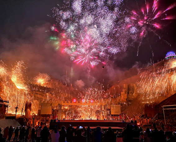 台駘山民俗大廟會用紅綢佈置了2019米文化長廊,用201900盞燈籠裝飾節日氣氛。舞龍、抬棍、背棍和晉劇等十幾種的民俗表演現場人山人海。幾百種來自全國的風味小吃讓遊客大塊朵頤。白天感受廟會的紅火熱鬧,晚上的大型非遺實景劇更是將節日氛圍推向高潮,看風火流星的表演,領略大師表演的風采,賞韓式鐵花,感受千年絕技的魅力。台駘山的鐵花焰火,滿足你春節看焰火的願望。