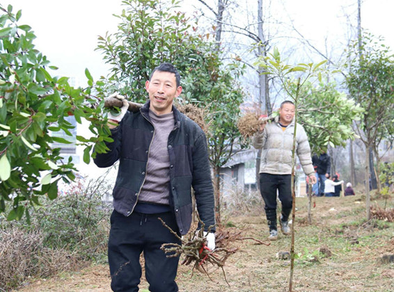 當天植樹活動現場,處處是忙碌的身影,參與植樹的人們,頂着春寒,爬上山坡,揮鍬鏟土,扶苗填坑,踏土夯苗,認真地完成着每一道工序,種下一株株樹苗。當日共種植欒樹、小葉楨楠、紅葉石楠、柏木等樹苗16550株。