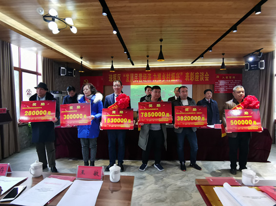 春節上班第一天,珠暉區召開了2019年「發展民營經濟 力推鄉村振興」表彰座談會,對衡陽力豐現代農業發展有限公司等10家為該區2018經濟發展作出突出貢獻的「鄉村振興十佳民營企業」進行了表彰授牌,並為26家民營企業發放共1590萬元的鄉村振興獎補資金。衡陽珠暉區茶山坳鎮堰頭村一時喜氣洋洋。