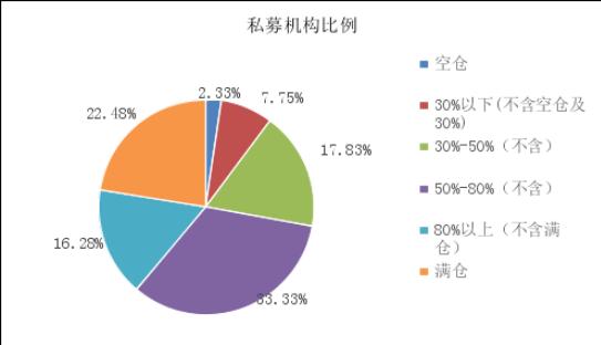 具体仓位分布来看,调查显示,22.48%的私募目前处于满仓状态,相比上个月的22.61%基本持平;72.09%的私募在5成仓或者5成仓以上,高仓位的私募占比相比上个月有所上升,整体变化不大;另外27.91%的私募处于半仓以下,其中只有2.33%的私募处于空仓观望状态。整体来看,在市场经历过二次反弹之后,特别是在美国股市强劲表现的背景下,私募中高仓位的比例有所上升,反映出对市场的乐观。