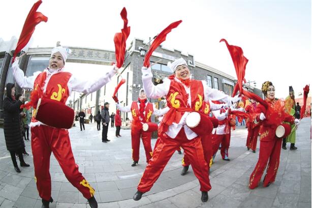 廟會期間,大盛魁文創園南區北廣場的主舞臺、大召東倉及西城門樓子將分別開展社區烏蘭牧騎專場演出、非遺傳統民俗項目和蒙古族婚禮表演等活動。“遊八仙”活動當日,來自民間文藝團體的300餘人在大盛魁文創園廣場上扭起了歡快的秧歌。