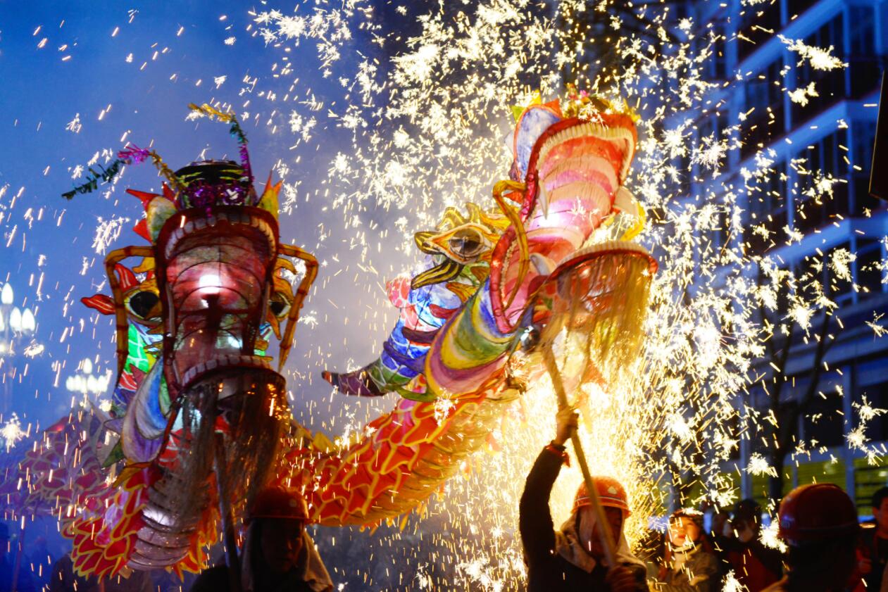 當晚,縣城鑼各村寨的舞龍雲集縣城,人們會用自製或買來的噓花筒對龍噓花,一時間鑼聲、鼓聲、炮竹聲喧聲貫耳。