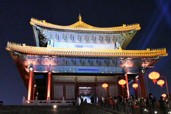 從雁翅樓向東,正好十五的明月漸漸升起,在掛滿大紅燈籠的城牆、遠處端莊精緻的東南角樓和上元明月輝映下,令人不由生出「此景只應天上有、人間難得幾回聞」的感慨,正是人在畫中游的意境。