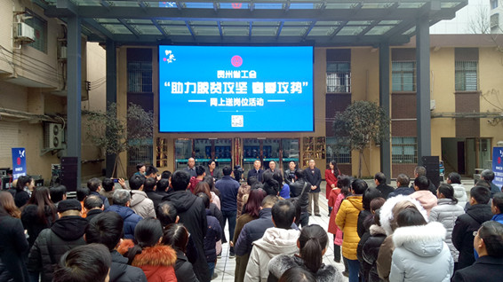 啟動儀式上,貴州省人大常委會黨組副書記、副主任,省總工會主席袁周宣布「貴州省工會助力脫貧攻堅春季攻勢」網上送崗位活動啟動,並現場連線了解部分分會場情況。