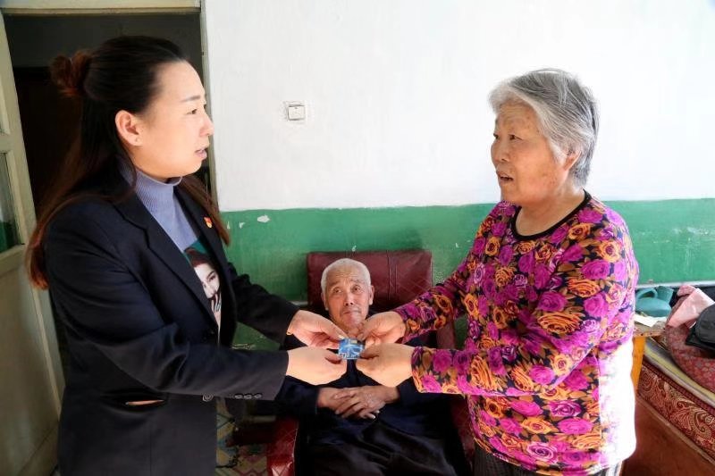 吳英發和老伴胡淑蘭盼望已久的低保辦下來了,當胡淑蘭接過銀行卡的那一刻,眼裡泛着淚花,激動的說:「麻煩大家了,多虧你們忙前跑後,讓我這什麼也不懂的老太太,坐家裡拿到了低保。」