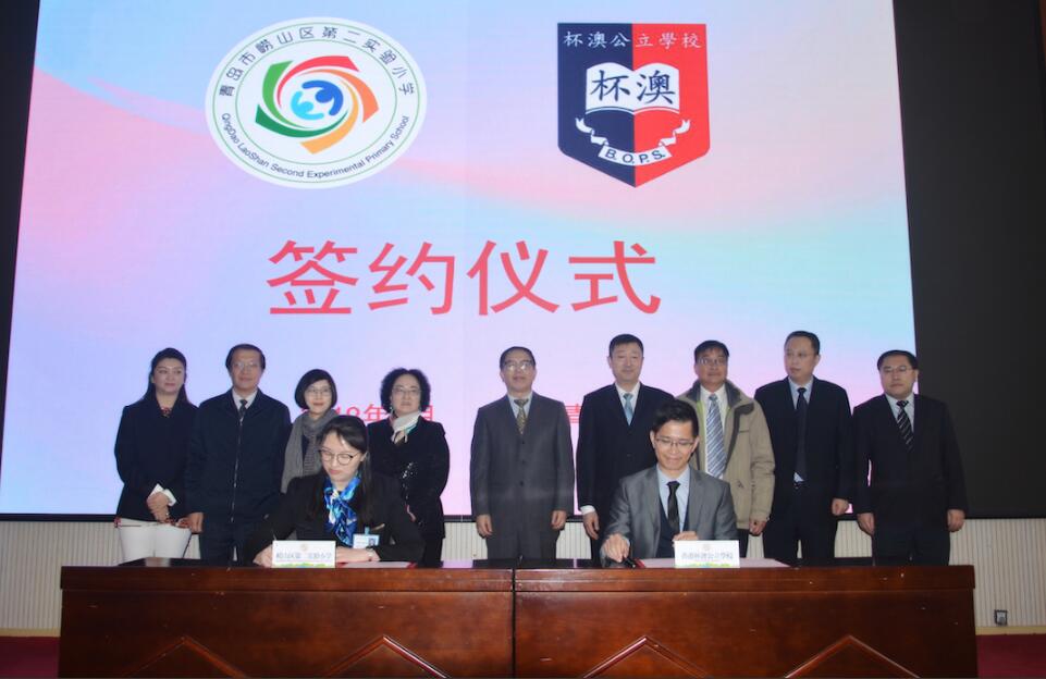 【香港商報網訊】2月28日,通過青島海外聯誼會和香港青島同鄉聯誼會牽線搭橋,香港離島區杯澳公立學校與青島嶗山區第二實驗小學結為姊妹學校。簽約儀式上,香港杯澳公立學校與嶗山區第二實驗小學分別介紹學校有關情況,並互贈禮物。兩校將在今後,共同建立教育合作關係,管理人員交流治校經驗,教師開展課程及教學研討,分享教育理念,學生們利用假期舉辦文體交流聯誼活動,家庭式互訪。