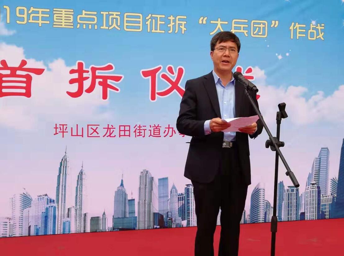 龍田街道土地整備負責人官偉舜在儀式上鄭重表態:發展是硬道理,征拆是硬任務。土地整備中心堅決從大局出發,充分調動每位參戰人員的積極性,按照任務要求,採取逐棟突破、戶戶攻堅等一切有效措施,堅決、全面、高效、及時地完成區委、區政府及街道黨工委交付的征拆任務,全力打好打贏這場征拆攻堅戰。