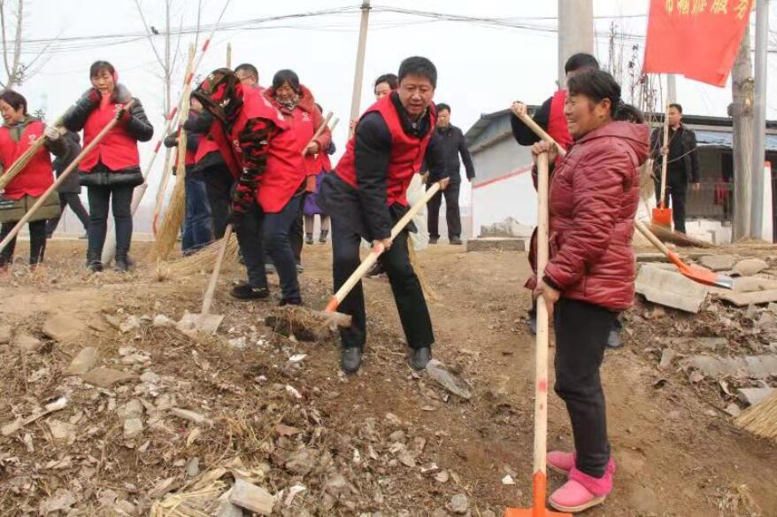 2018年該村申請到60萬元的農村環境整治專項資金,可是經專業施工隊核算:挖下水道、鋪道沿石、栽綠化樹、修廣場等少說也得120多萬。經過反覆商量,村委決定搞「幹群共建」,經費全部用來購買原材料,把規劃、設計、施工等開支節省下來,幹部群眾出義務工自己干。村委幹部、在家黨員、駐村幹部先帶頭干,將1300米開挖下水道任務按勞動力平均分到每家每戶。同時,村黨支部把留守婦女組織起來,發給她們紅馬甲,成立巾幗紅裝志願服務隊。