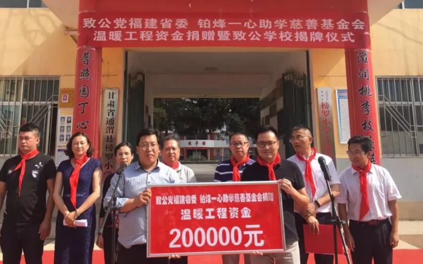 作為有着「僑」「海」界別特色的參政黨,致公黨福建省委會積極整合黨內及海外僑團組織優勢資源力量,牽線阿根廷玄武山洪門協會、鉑烽一心助學慈善基金會、菲律賓中國洪門致公黨等海外僑團組織,陸續在渭源縣田家河小學、安定區黑山中心小學、通渭縣榜羅小學掛牌致公學校牌匾,累計落實幫扶資金230萬元,用於支持學校基礎設施建設。