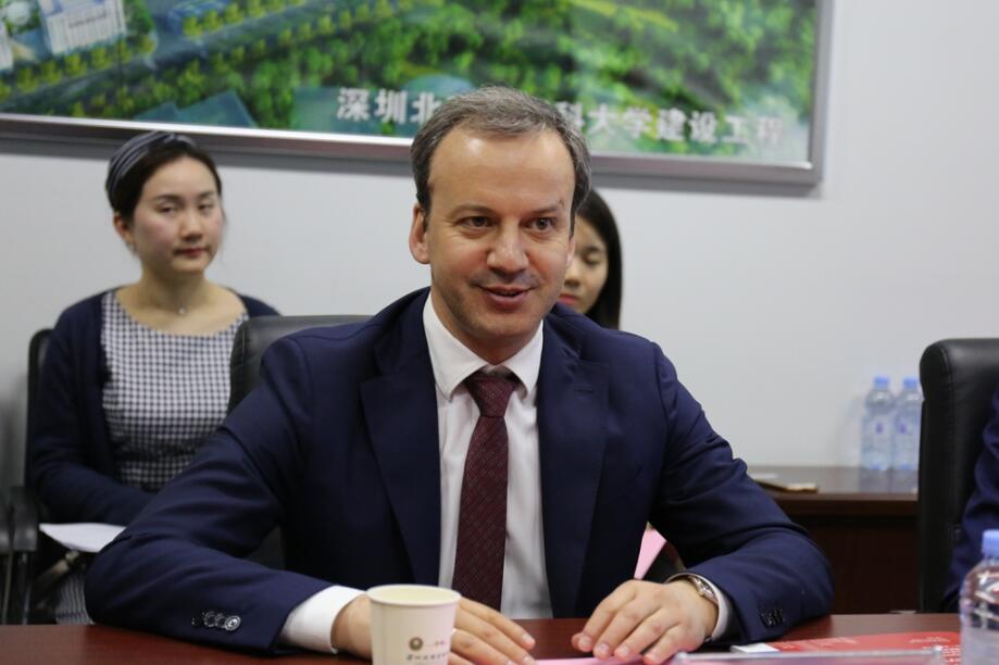阿爾卡季·德沃爾科維奇主席讚揚深圳北理莫斯科大學取得的辦學成績,他說自己在擔任俄羅斯聯邦副總理期間就非常關注深圳北理莫斯科大學這一中俄重要戰略合作項目。德沃爾科維奇主席表示,作為莫斯科大學經濟系的畢業生,自己與深圳北理莫斯科大學很有緣分,希望自己未來能有機會到學校舉辦學術講座。德沃爾科維奇同時也希望學校能有與國際棋聯相關的機構組織比賽,他很樂意帶領專業的國際象棋團隊前來參加,推動該校在國際象棋項目上的發展。
