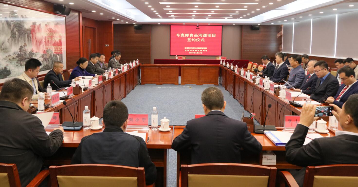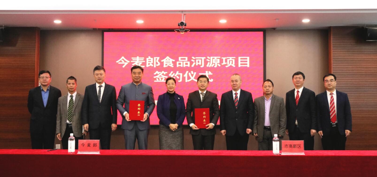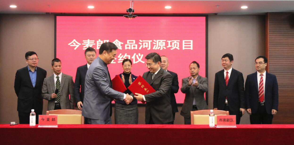 3月12日,河源副市長朱蔚蔚,河源高新區、深河指揮部和市直相關部門負責人見證了簽約儀式。河源高新區管委會主任孫鋒與今麥郎面品有限公司董事長范現國簽約。