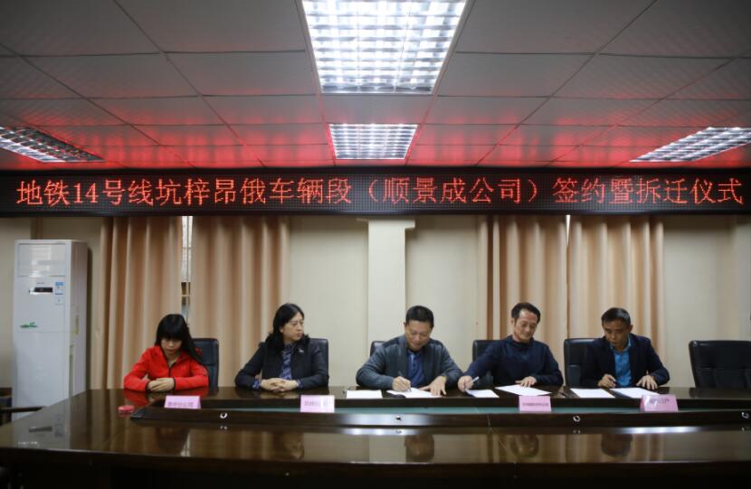 【香港商報訊】記者 焦家志 報導:3月15日上午,坪山區坑梓街道辦事處與地鐵14號線上順景成公司在沙田股份公司簽訂了征拆框架協議,並正式開始拆除,拉開了地鐵14號線(坑梓段)征地拆遷工作的序幕。