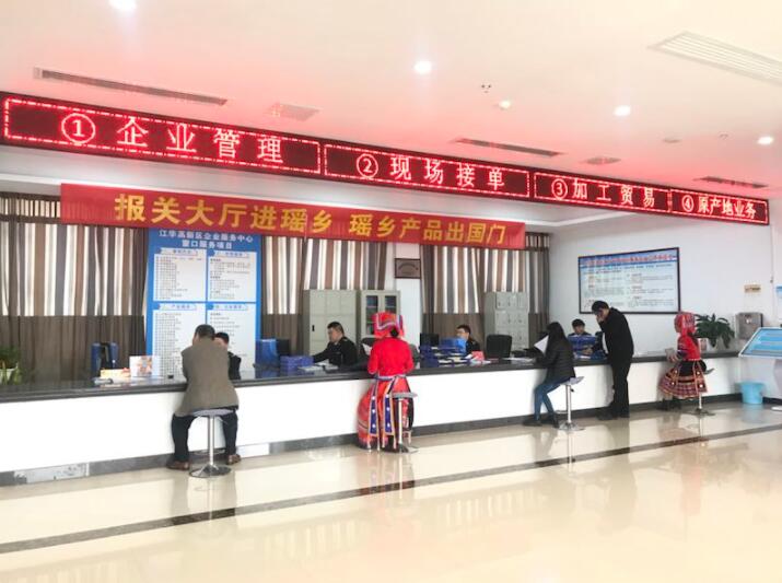 2017年底,永州海關江華工作站掛牌成立,江華園區的外貿企業只需將相關手續資料發給江華工作站進行預審並全程代辦手續報關。現在通過永州海關的現場辦證報關大廳,大大節省了辦證程序,也為江華海關工作站減輕了負擔。