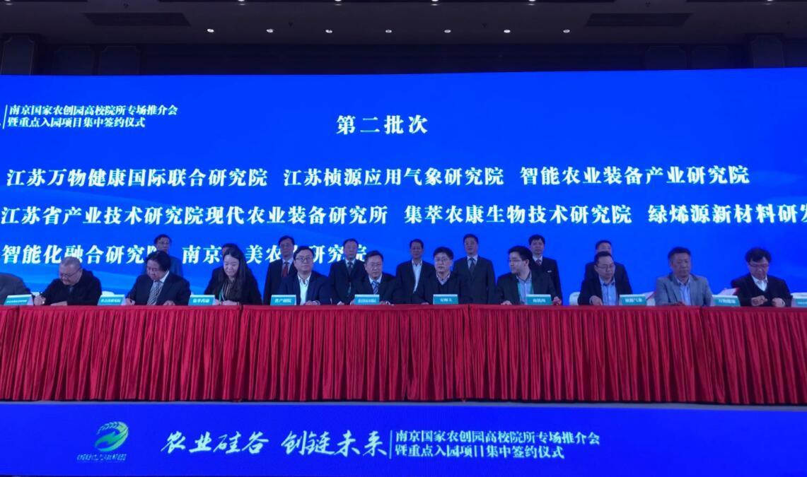 會上,農創園分別與33家單位集中籤訂入園協議,簽約項目包括高科技農企、高水平基金、高質量服務平台、高關聯度產業聯盟、高價值鏈總部經濟、高層次聯合創新中心、新型研發機構等,幾乎囊括農業科技創新和成果轉化的全部要素,有利於加速各類優質項目和創業人才的聚合。此外,還舉行了南京農業大學長三角鄉村振興戰略研究院等項目的簽約儀式。