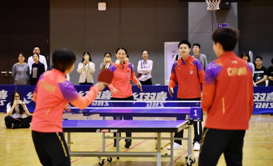 【香港商報網訊】記者 林麗青 報道:4月2日,正在備戰2019匈牙利布達佩斯世界乒乓球錦標賽的國家乒乓球隊來到香港中文大學(深圳)與師生進行聯誼互動活動。女子乒乓球隊主教練李隼、男乒教練劉國正、陳玘,女乒教練郭焱以及國乒隊員許昕、林高遠、王楚欽、於子洋、方博、周雨、徐晨皓、武楊、陳幸同、孫穎莎、劉高陽、王曼昱、張薔等明星球員和實力選手悉數亮相聯誼互動活動。