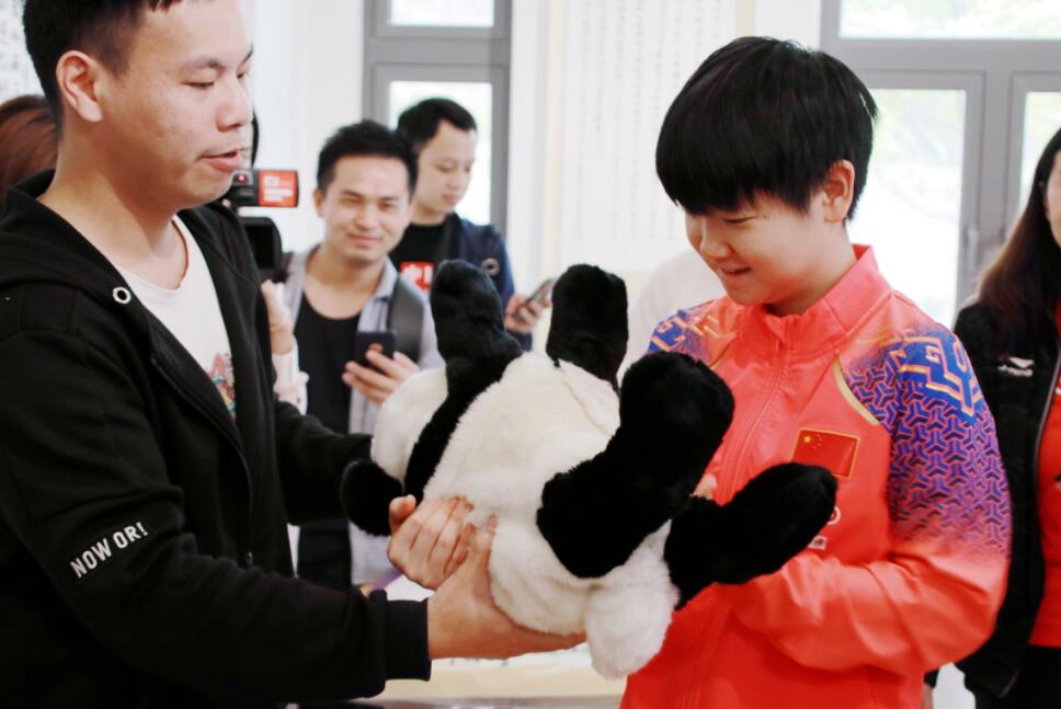 孫穎莎運動員與熊貓機械人互動