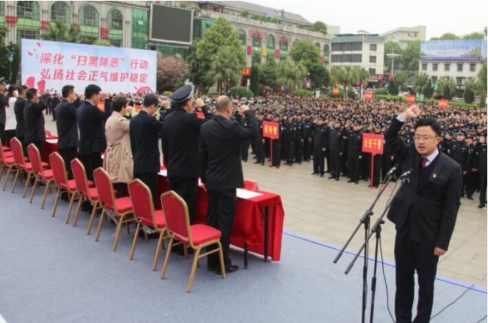 當天,該縣主要領導及各鄉鎮、各單位、各人民團體和群眾參加活動。活動現場,全體人員隊列有序、莊嚴肅穆,宣誓代表集結成陣、整齊劃一,公安幹警警容嚴整,警車整齊排列、蓄勢待發。誓師大會結束後,由警車、防爆車等組成的縣掃黑除惡專項鬥爭巡回宣傳車隊分兩路,前往全縣19個鄉鎮社區進行巡回宣傳,向市民、村民群眾表明該縣強力掃黑、鐵腕懲惡,堅決打贏掃黑除惡攻堅仗,誓保宜章和諧穩定的信心和決心。