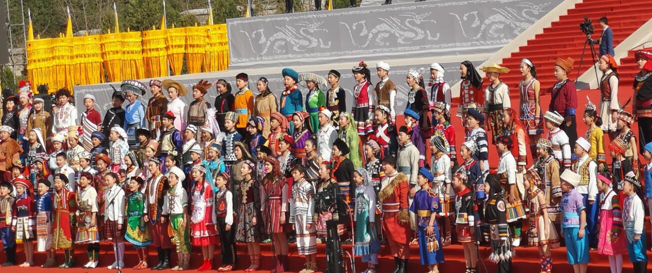 112名少年兒童身着56種民族服飾高唱《黃帝頌》