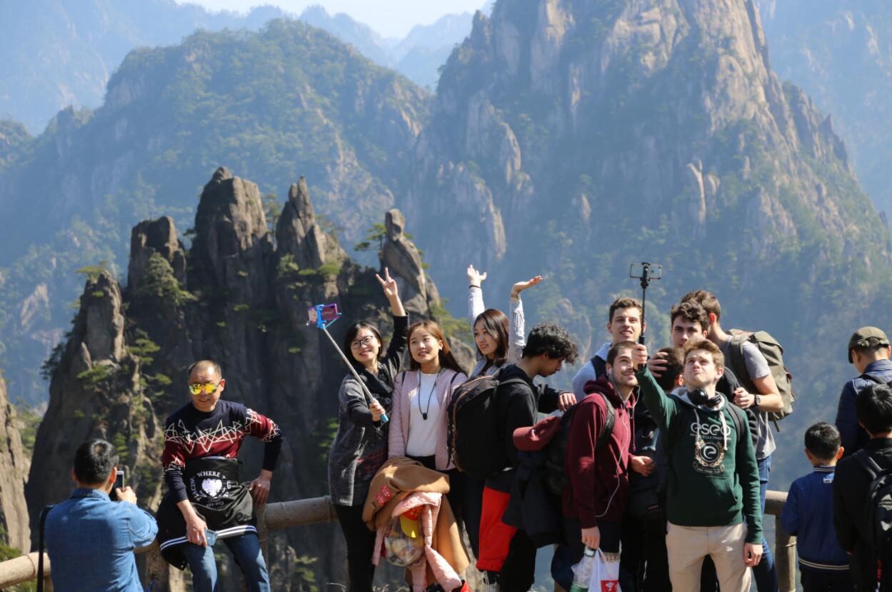 清明小長假首日,中外遊客暢遊黃山