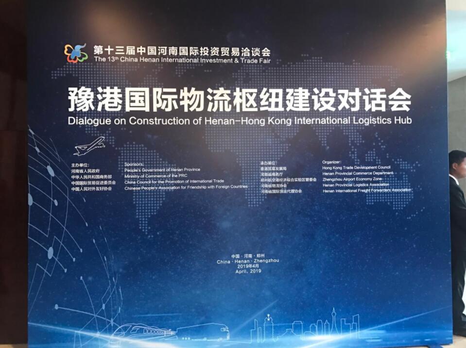 【香港商報網訊】記者 王皓萍 報道:4月8日下午,第十三屆中國河南投資貿易洽談會隆重召開之際,由香港貿易發展局、河南省商務廳、鄭州航空港經濟綜合實驗區管委會、河南省物流協會、河南省國際貨運代理協會聯合承辦的豫港國際物流樞紐建設對話會在鄭州美盛喜來登酒店舉行。