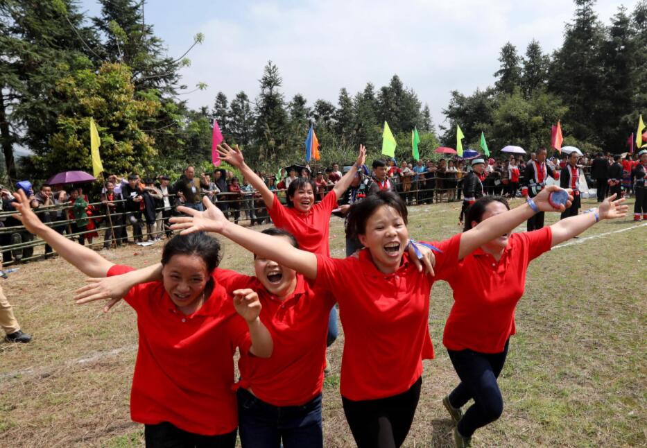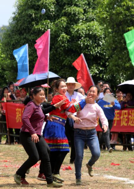 【香港商報網訊】4月7日,廣西柳州市融安縣板欖鎮舉行山歌節,近三百名青年男女在山歌節現場爭搶花炮,吸引眾多遊客前來觀看。