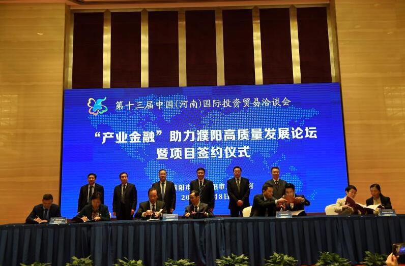 【香港商報網訊】記者 王皓萍 報導:4月8日下午,藉助第十三屆中國河南國際投資貿易洽談會這個國家級貿易平台,濮陽市在鄭州舉行「產業金融」助力濮陽高質量發展論壇暨項目簽約儀式,宣傳推介濮陽,簽約重點項目。據悉,本屆投洽會濮陽共簽約43個項目,總投資576.5億元。